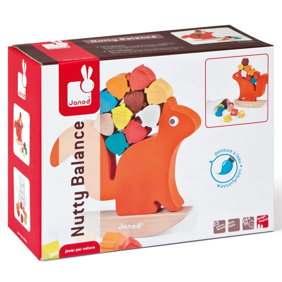 Tömörfa egyensúlyjáték, ideális a gyermekek készségeinek és ügyességének fejlesztéséhez. A játék abból áll, hogy minél több mogyorót halmozunk a 20 közé a hintalókra, anélkül, hogy leejtenénk őket. Pamut táska a könnyű tároláshoz. Ez a játék vízbázisú festékkel van festve, és mókust, hintát, 20 diót és pamutzsákot tartalmaz. Termék méret: 24 x 3,5 x 20 cm